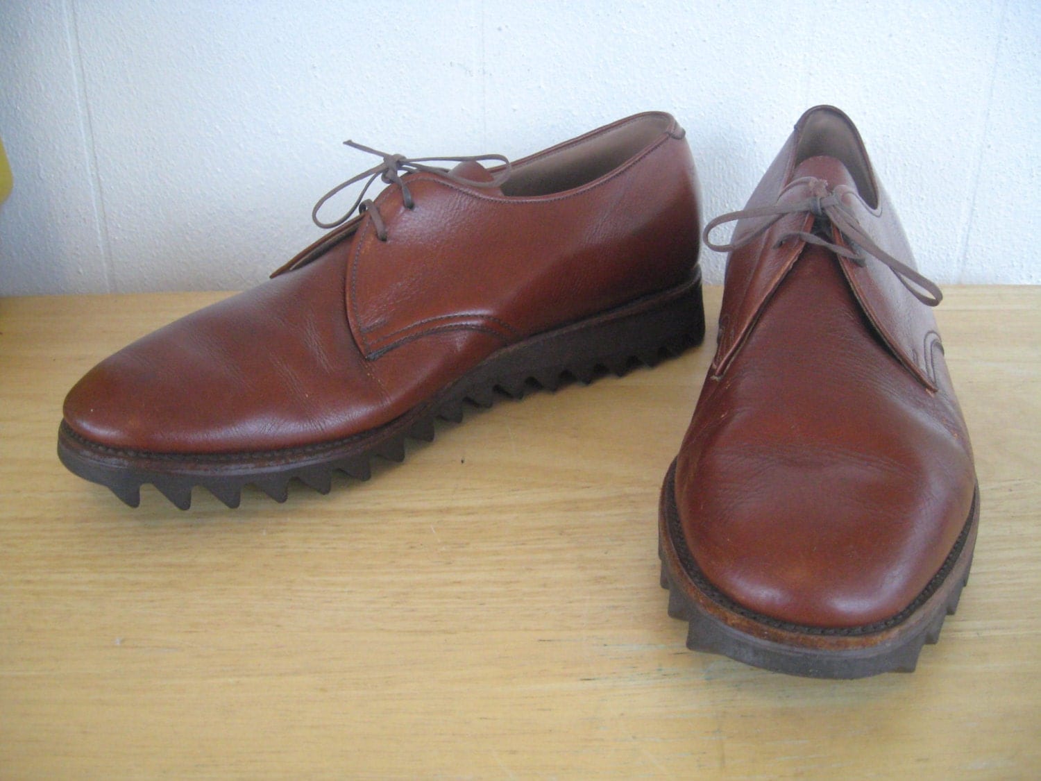 | 1950s Mens Vintage French Shriner by Evans Shoes 50s Ripple Sole Oxfords, Dark Caramel Sz 11 |