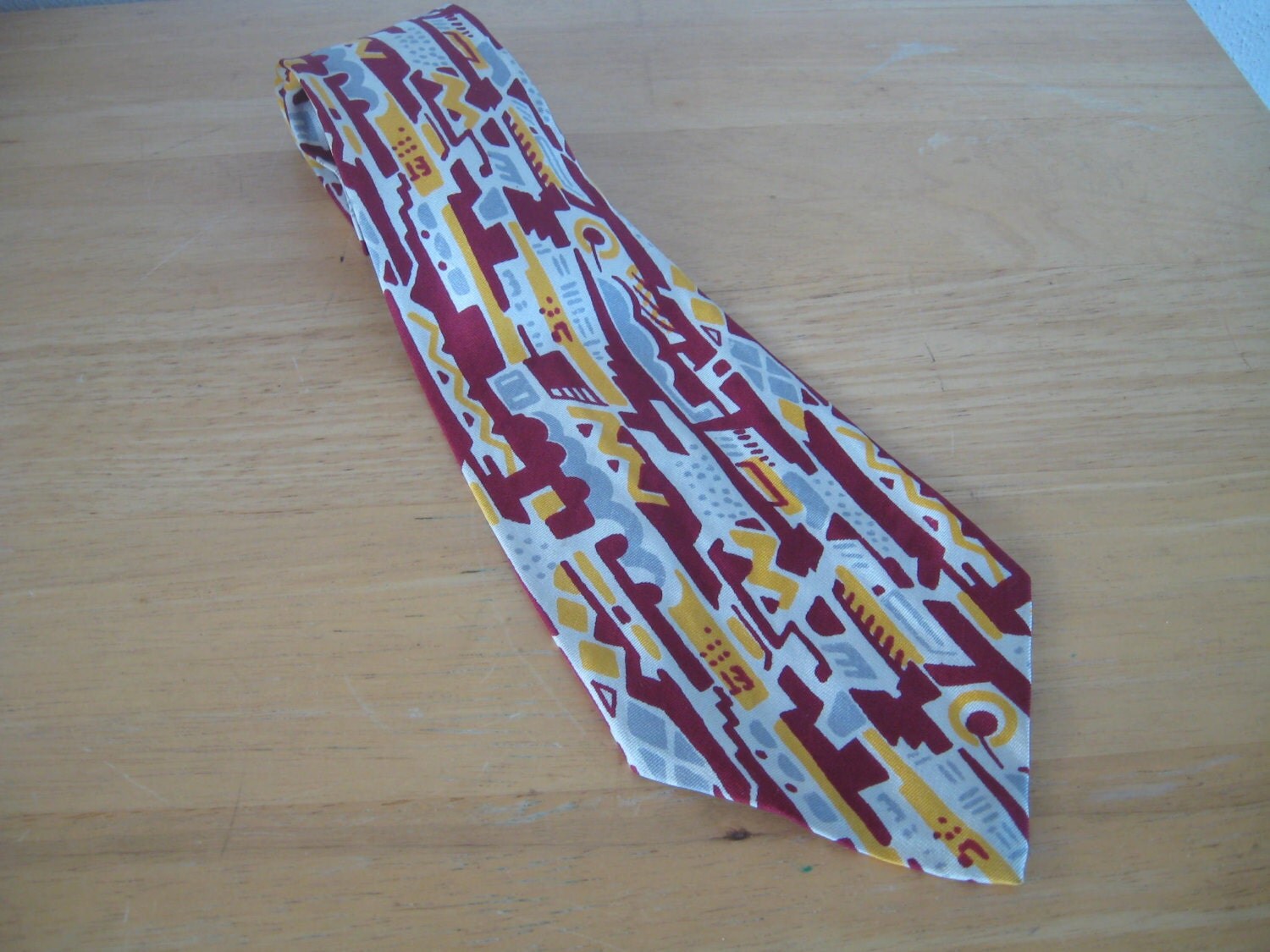 | Vintage 1940s Silk Wilcrest All Silk Pure Dye Wilson Brothers Abstract Tie 40s Silk tie in Black with Magenta & Silver / Gray Blobs |